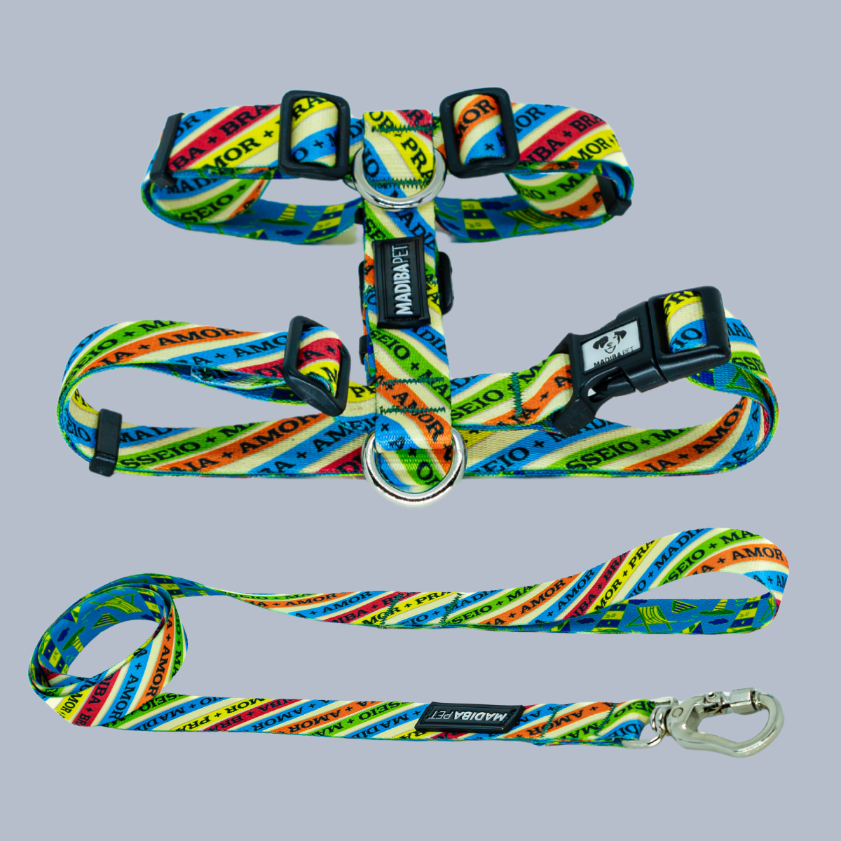 Kit Peitoral H e Guia de Passeio Bomfim para Cães e Gatos - Madiba Pet