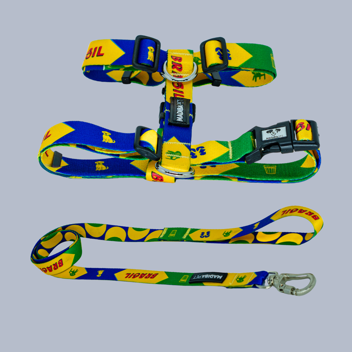 Kit Peitoral H e Guia de Passeio Puro Suco do Brasil para Cães e Gatos - Madiba Pet